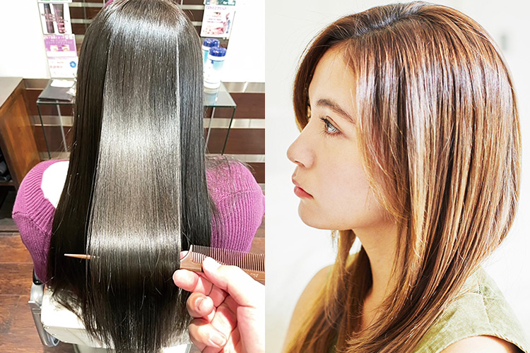 縮毛矯正をする程じゃないけど、髪の広がりを抑えたりツヤを出したい。酸性域でかけるストレートなので従来の縮毛矯正とは違い、ダメージが少なくツヤや柔らかい仕上がりを出すことができます。弱酸性に近い酸性域の薬剤を使用することによりキューティクルを少しずつ広げ、必要以上に結合を切らないことでダメージは激減します。クセが気にならない方にも髪質改善としてオススメなメニューです。