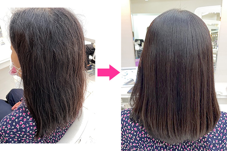 髪質改善トリートメントをお願いしました! 髪の傷みがずっと気になっていました。半信半疑で試してみたら、あきらめかけていた艶が出て、驚きと嬉しさでいっぱいです。試してみて本当に良かった。 そして丁寧な接客でありがたかったです! ありがとうございました!
